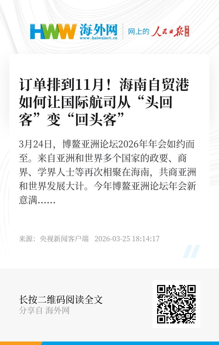 今年博鳌亚洲论坛年会新意满满。第一个新,就是海南自贸港启动封关运作以来所呈现出的蓬勃新气象,据海口海关统计,自2025年12月18日封关运作以来,截至2026年2月底,海南企业货物贸易进出口总额654.9亿元,同比增长29.1%。