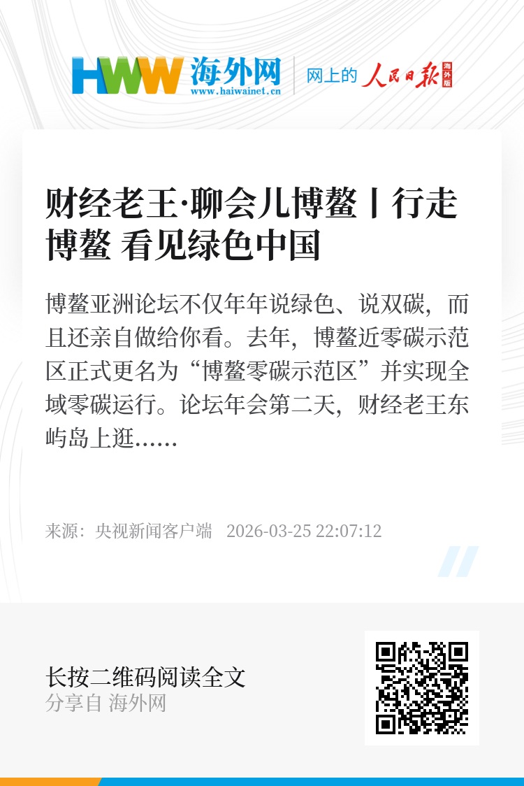 博鳌亚洲论坛2026年年会发布的旗舰报告指出,当前亚洲经济发展呈现的趋势之一,就是低碳发展助力亚洲产业绿色转型;而亚洲真正的可持续发展之路,则包含以数字化、绿色化为重点的亚洲科技创新。绿色是博鳌的亮色,也是未来发展的底色。绿色发展不只是宏大的议题,也在我们每个人的生活里。