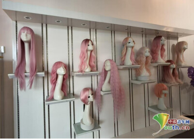 展厅内假发陈列。中国青年网见习记者王煜鑫 摄