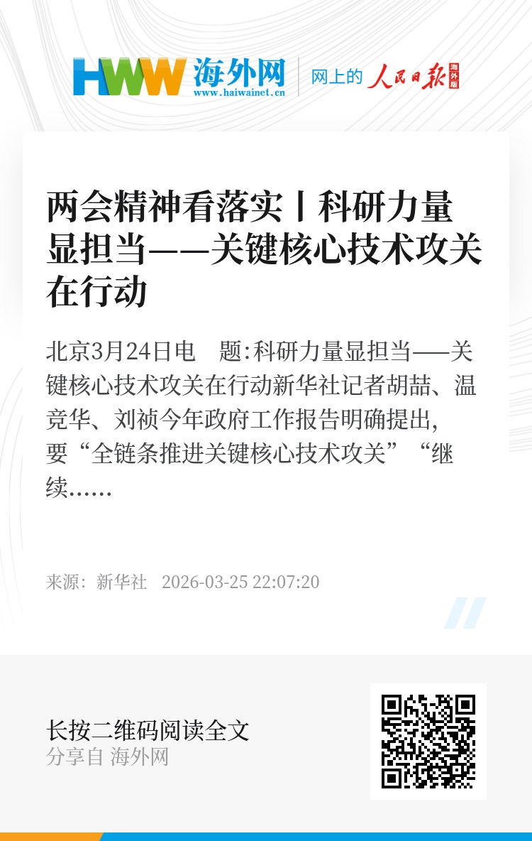 今年政府工作报告明确提出,要“全链条推进关键核心技术攻关”“继续提高基础研究投入比重”……从深空到大洋,从自然奥秘到生命密码,一支支科研团队正以冲锋姿态,将全国两会精神转化为攻关一线的火热实践。