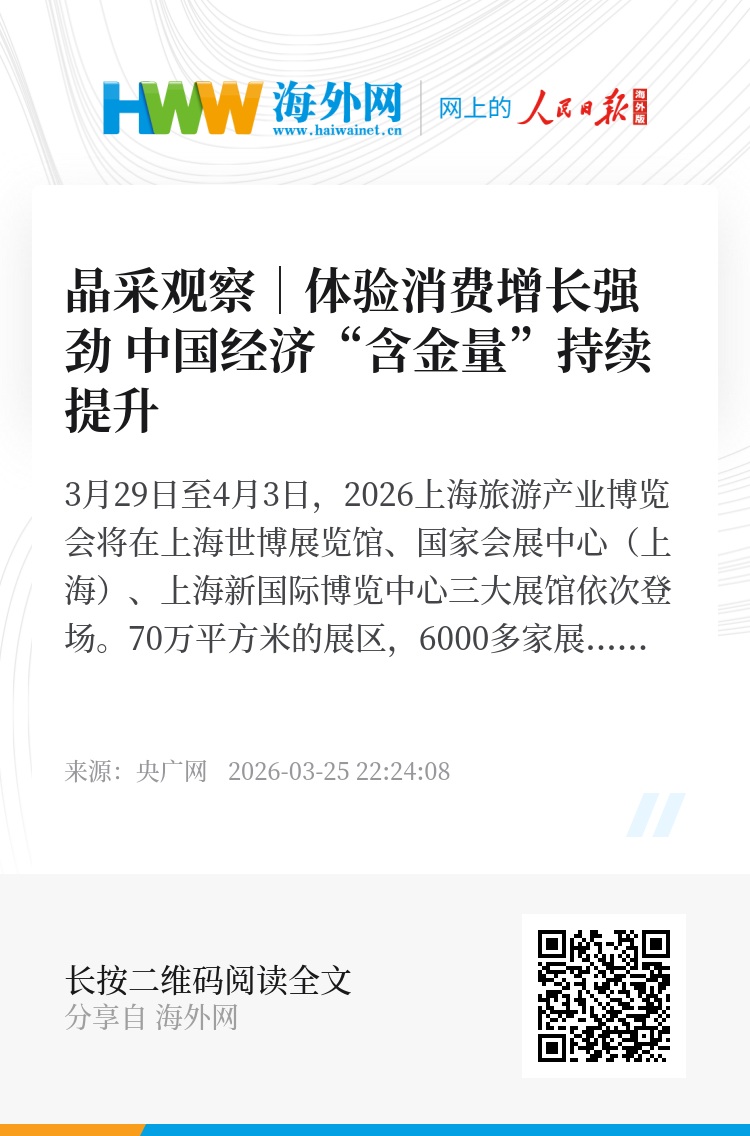 3月29日至4月3日,2026上海旅游产业博览会将在上海世博展览馆、国家会展中心(上海)、上海新国际博览中心三大展馆依次登场。70万平方米的展区,6000多家展商,还专门设置了机器人、无人驾驶船这些科技板块。展会的举办释放出一个信号:文旅行业正经历着一场显著变革,而这场变革的核心,正是最近持续走热的“体验经济”。
