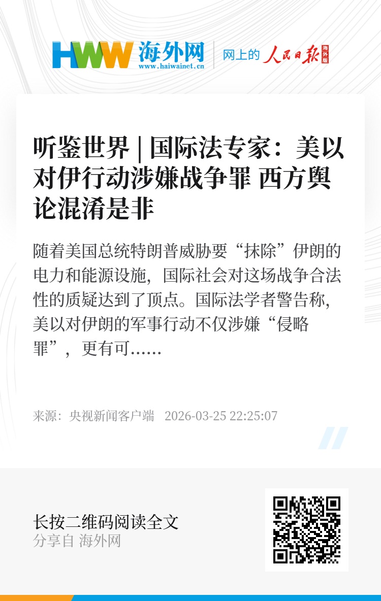 随着美国总统特朗普威胁要“抹除”伊朗的电力和能源设施,国际社会对这场战争合法性的质疑达到了顶点。国际法学者警告称,美以对伊朗的军事行动不仅涉嫌“侵略罪”,更有可能演变为严重的“战争罪行”。