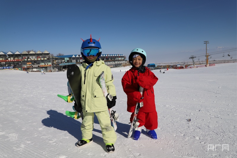 在丝绸之路国际滑雪场的雪道上,不同水平的滑雪爱好者各得其乐。高级道上,专业选手身姿矫健;中级道上,滑雪者正在展示刚刚学会的技巧。初级道上,3岁萌娃嗝嗝的滑雪首秀迎来不少家长的叫好。嗝嗝的母亲介绍,新疆有得天独厚的条件,这里的雪质好,气温舒适,适合孩子滑雪。