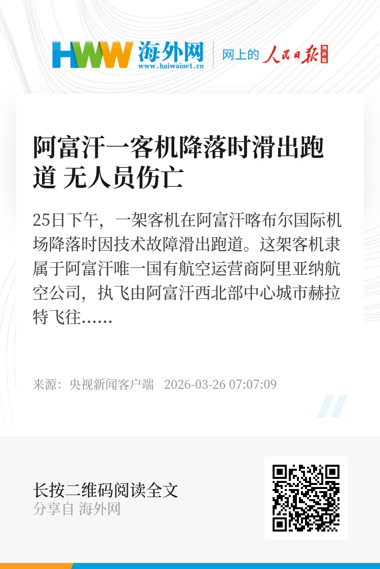 25日下午,一架客机在阿富汗喀布尔国际机场降落时因技术故障滑出跑道。