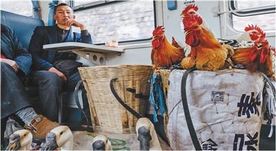 成昆铁路5634次慢火车上,四川大凉山的乡亲们带着家禽去赶场。