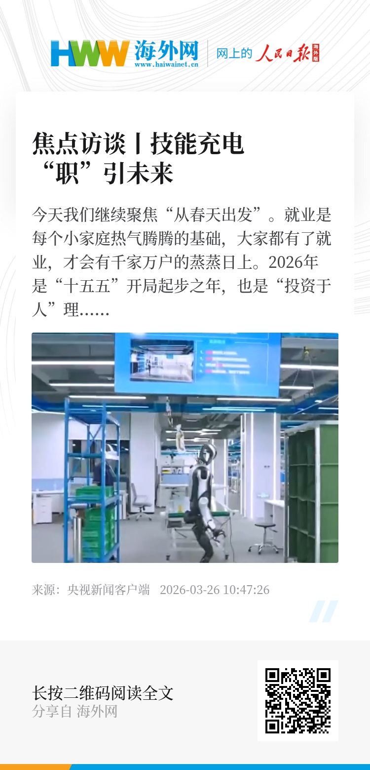 从宁夏的夜校课堂到北京的训练中心,从为生活“充电”的劳动者到给机器人“上课”的年轻人,2026年的春天,这些发生在不同角落的故事告诉我们:无论产业如何变革,人始终是最核心的变量。让每一个人都“能就业,就好业”,让更多劳动者拥有一技之长、更好地就业增收——这正是“投资于人”的深刻内涵,也是“十五五”开局之际,春意盎然的中国大地上,最动人的奋进图景。