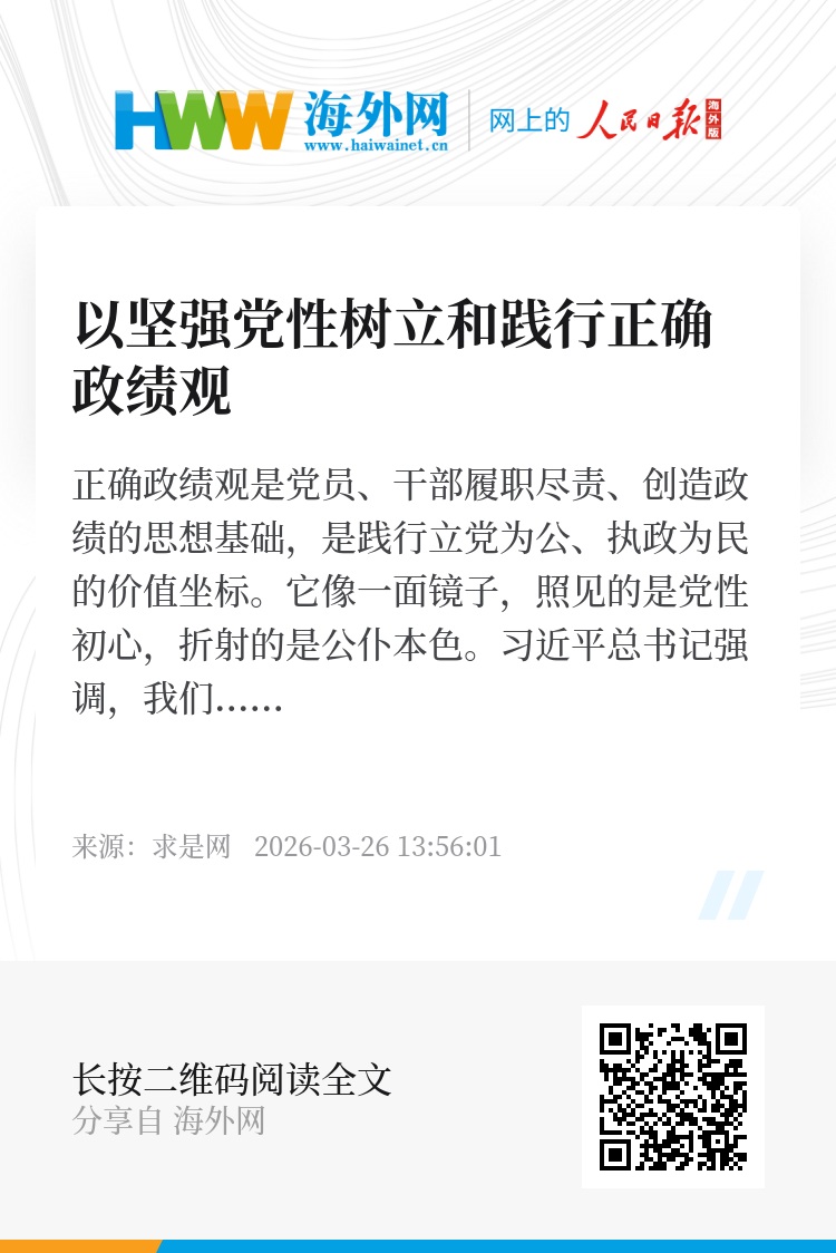 广大党员、干部要深学细悟习近平总书记关于树立和践行正确政绩观的重要论述,坚持党性原则,加强党性修养,把公心挺在前面,常思常想“入党为什么、当‘官’干什么、身后留什么”,保持共产党人的政治本色,坚持先公后私、公而忘私,不折不扣而又创造性地贯彻落实党中央决策部署,真心实意为党和人民履职尽责、干事创业。(是说新语)