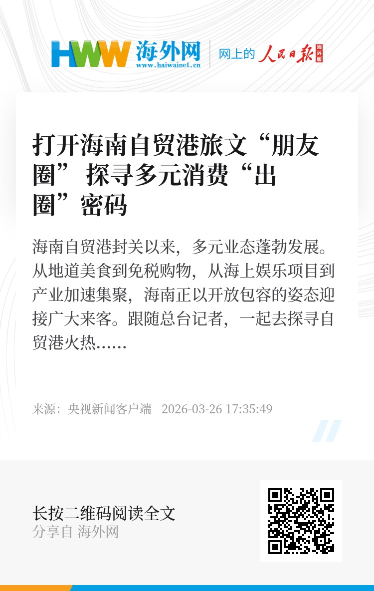 海南自贸港旅文的“朋友圈”里,有世代传承的味道,也有漂洋过海的来客;有乘风破浪的活力,也有深潜蔚蓝的想象。海南自贸港正以开放包容的姿态,欢迎五湖四海的朋友。