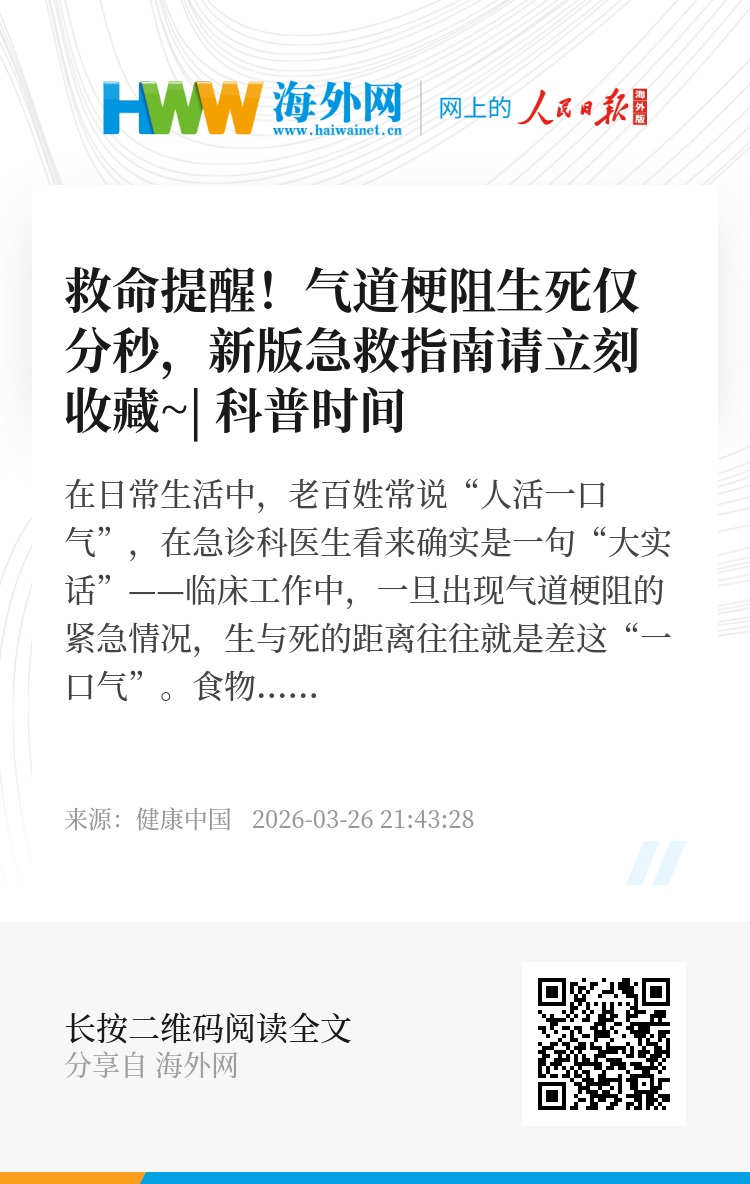 食物呛入、异物卡喉等意外时有发生,轻则引发剧烈咳嗽、呼吸困难,重则在短时间内导致窒息死亡。随着公众健康意识的增强,气道梗阻的急救知识愈发受到关注,而新版气道梗阻急救指南的发布,更让科学施救成为大家关注的焦点。