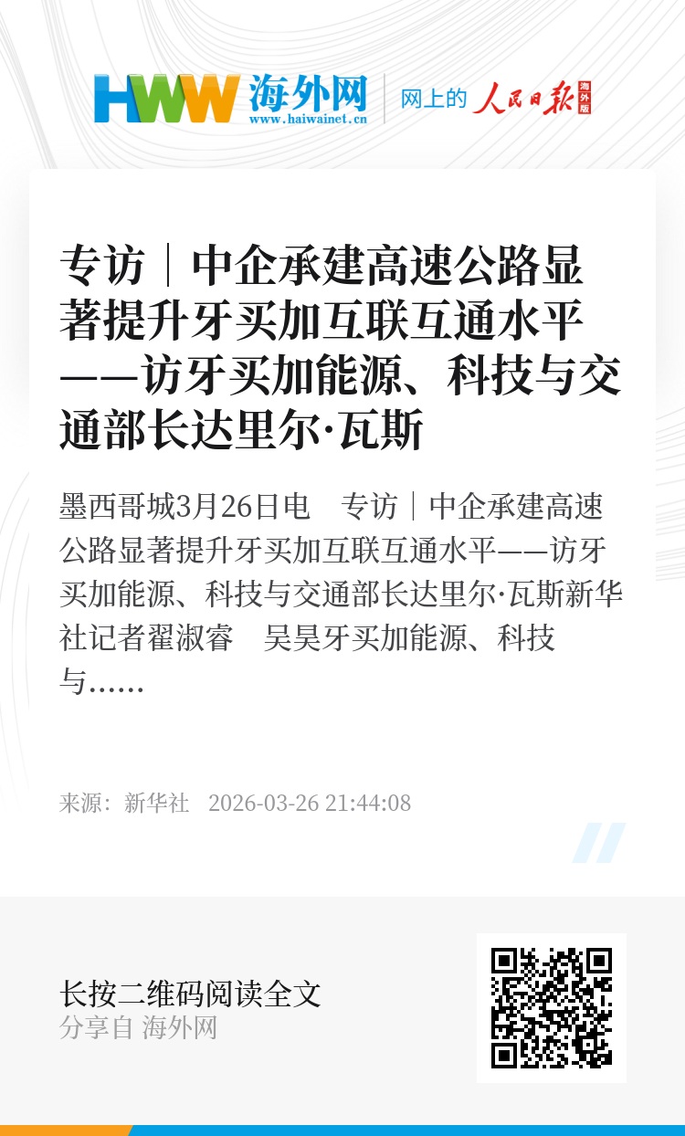 新华社墨西哥城3月26日电 专访|中企承建高速公路显著提升牙买加互联互通水平——访牙买加能源、科技与交通部长达里尔·瓦斯