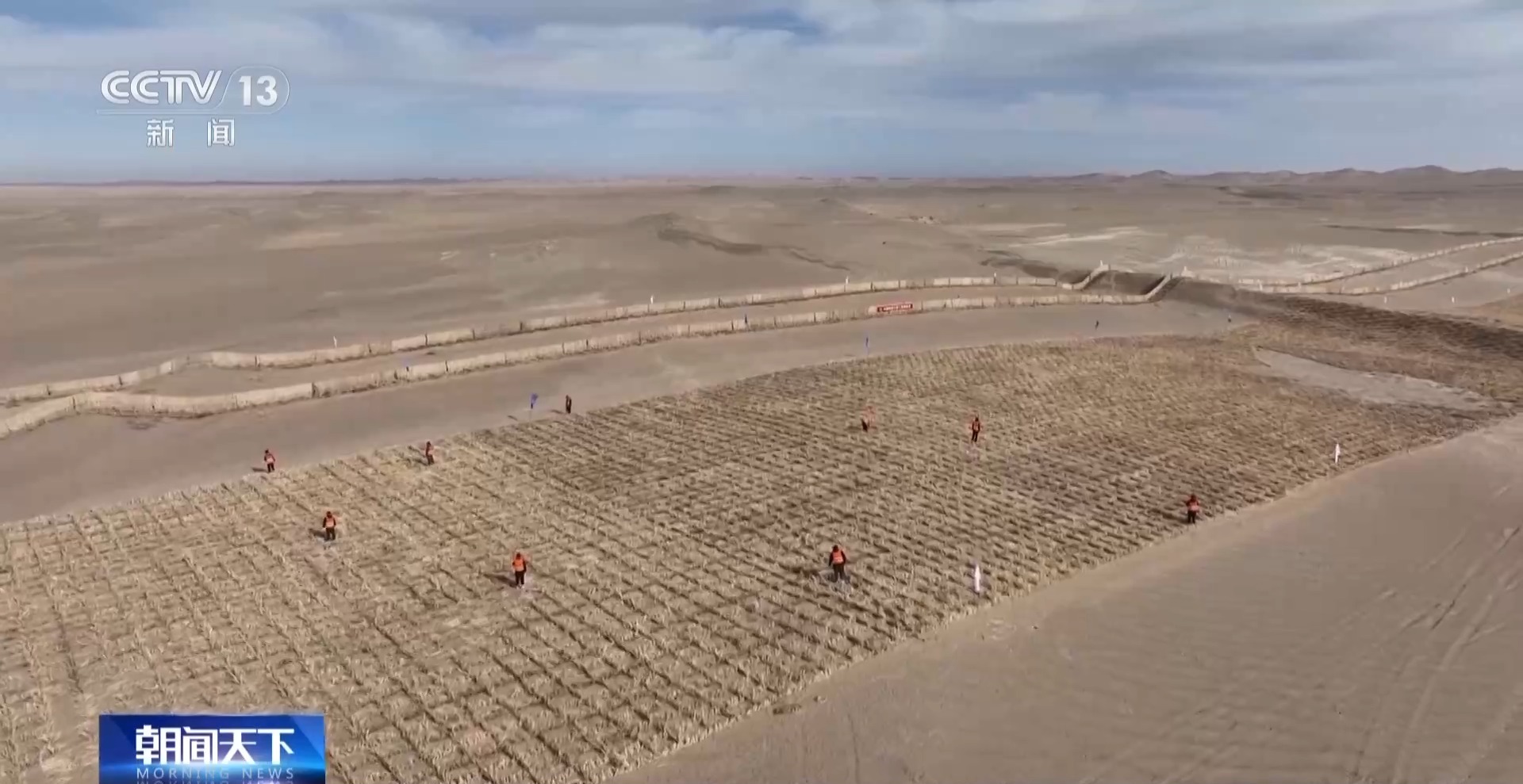 针对沙漠缺水、土壤贫瘠的现状,当地还同时启动滴灌管网的建设和土壤改良等工作,将防风固沙与生态农业深度融合,实现生态与经济效益“绿富同兴”。
