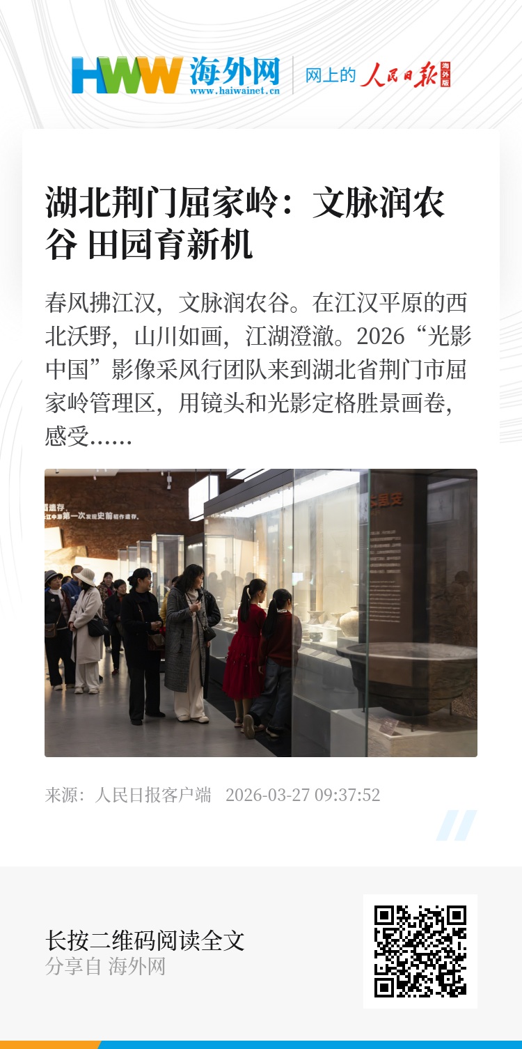 “既能触摸古老文明,又能畅享田园风光,在这里,对历史和文明的感知变得更加直观生动。”来自武汉的游客陈女士带着孩子在屈家岭国家考古遗址公园漫步,连连赞叹。屈家岭遗址承载着距今5900年至4200年的文明记忆。作为屈家岭文化的发现地与命名地,这里依托遗址打造的国家考古遗址公园,将博物馆陈列、考古现场与田园风光融为一体,成为集科研、教育、游憩于一体的公共文化空间。
