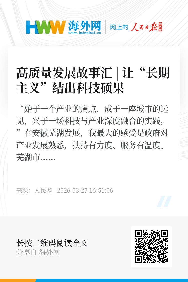 政策的沃土,让我们敢于坚持“长期主义”,去啃技术创新中的“硬骨头”,实现关键核心部件100%自主化。打造创新生态,也是政府的“长期主义”,把最好的资源种在最好的土壤里,让创新这棵大树根深叶茂,结出的科技果实更多、更甜。(人民网记者汪瑞华整理)