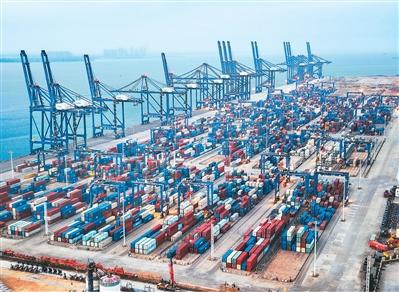 从2025年12月18日封关至2026年3月23日,近百天时间,海南洋浦港港口集装箱吞吐量达101.04万标箱,同比增长101.5%,外贸集装箱吞吐量超38.43万标箱,交出亮眼“成绩单”。图为洋浦港集装箱码头,港区集装箱堆放整齐,作业规范,秩序井然。叶龙斌摄(人民视觉)