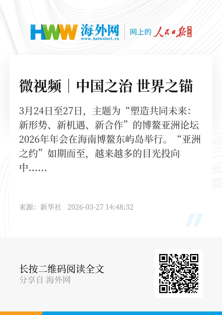 3月24日至27日,主题为“塑造共同未来:新形势、新机遇、新合作”的博鳌亚洲论坛2026年年会在海南博鳌东屿岛举行。“亚洲之约”如期而至,越来越多的目光投向中国。人们清晰地看到,在全球动荡变革中,一种稳定而持续的力量,正在为亚洲、为世界注入信心。
