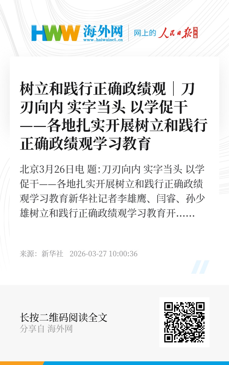 新华社北京3月26日电 题:刀刃向内 实字当头 以学促干——各地扎实开展树立和践行正确政绩观学习教育