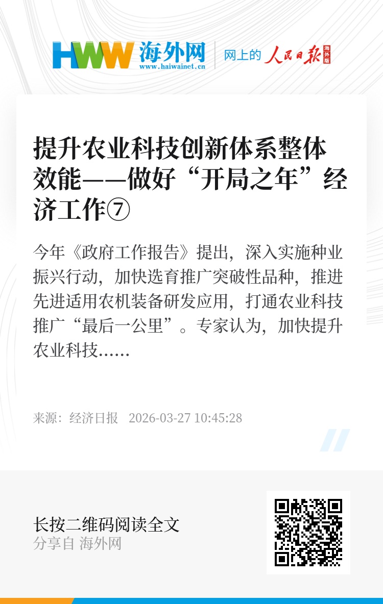 今年《政府工作报告》提出,深入实施种业振兴行动,加快选育推广突破性品种,推进先进适用农机装备研发应用,打通农业科技推广“最后一公里”。专家认为,加快提升农业科技创新体系整体效能是政策的一贯着力点,需立足我国“大国小农”的基本国情农情和农业生产现实需求,多方协同联动,形成“科研—生产—反馈—优化”闭环,有力破解农业科技与生产“两张皮”难题。
