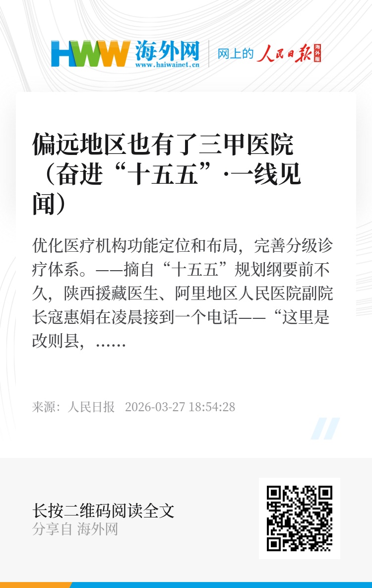 数据显示,阿里地区人民医院2025年第四季度门诊量相比上年同期增加18.2%。“患者数量增加背后是信任提升。”杜倬婴感慨,“三甲医院意味着更高的平台、更好的资源配置,也提出了更高的要求,这倒逼着医院工作者持续提高自身本领,不断满足群众的预期。”(本报记者 徐驭尧)