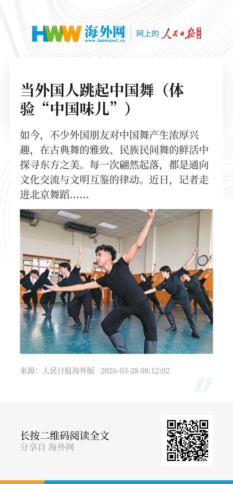 如今,不少外国朋友对中国舞产生浓厚兴趣,在古典舞的雅致、民族民间舞的鲜活中探寻东方之美。每一次翩然起落,都是通向文化交流与文明互鉴的律动。