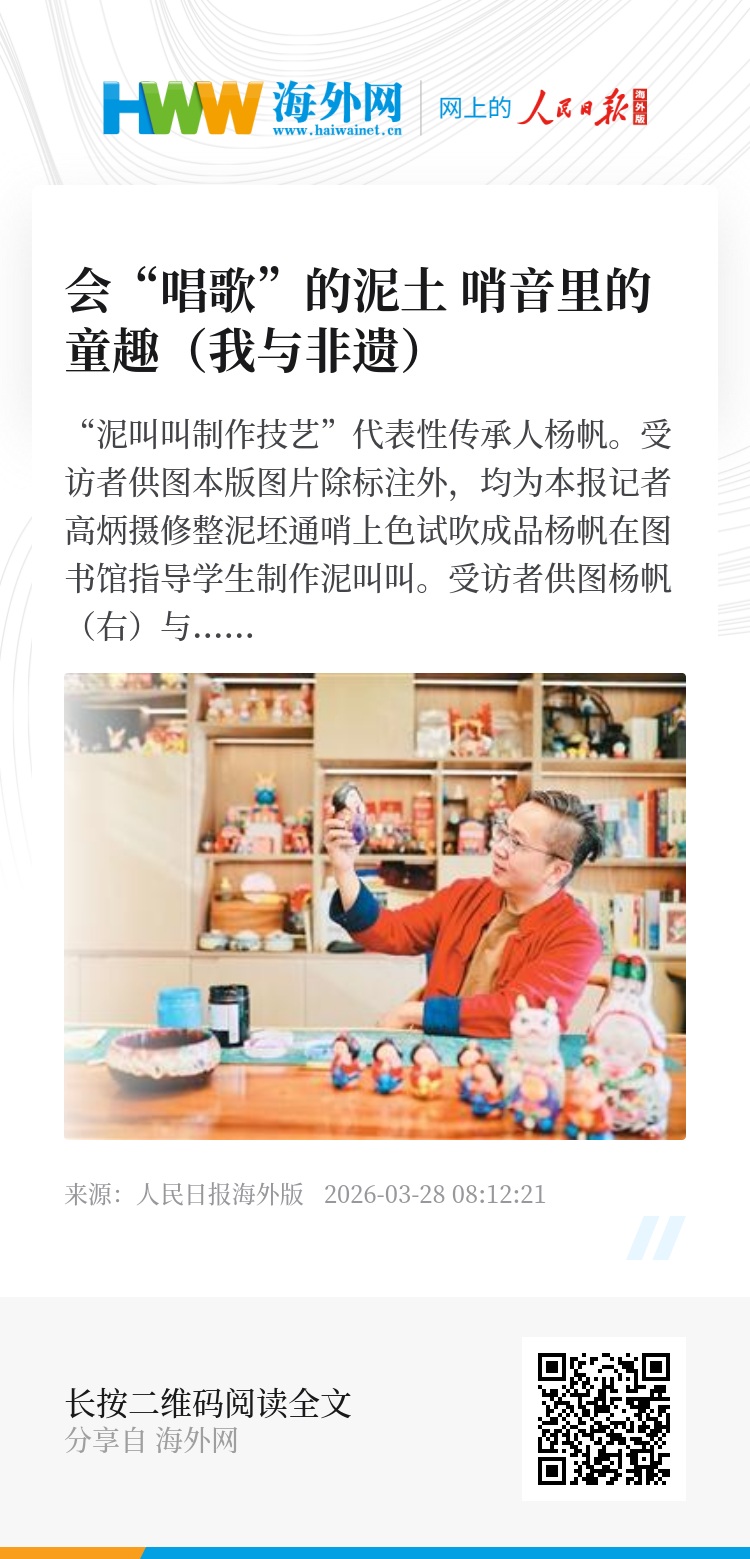 “非遗古韵有‘新声’。我会继续努力,让泥叫叫的‘哨声’越吹越响。”杨帆说。(记者 高炳)
