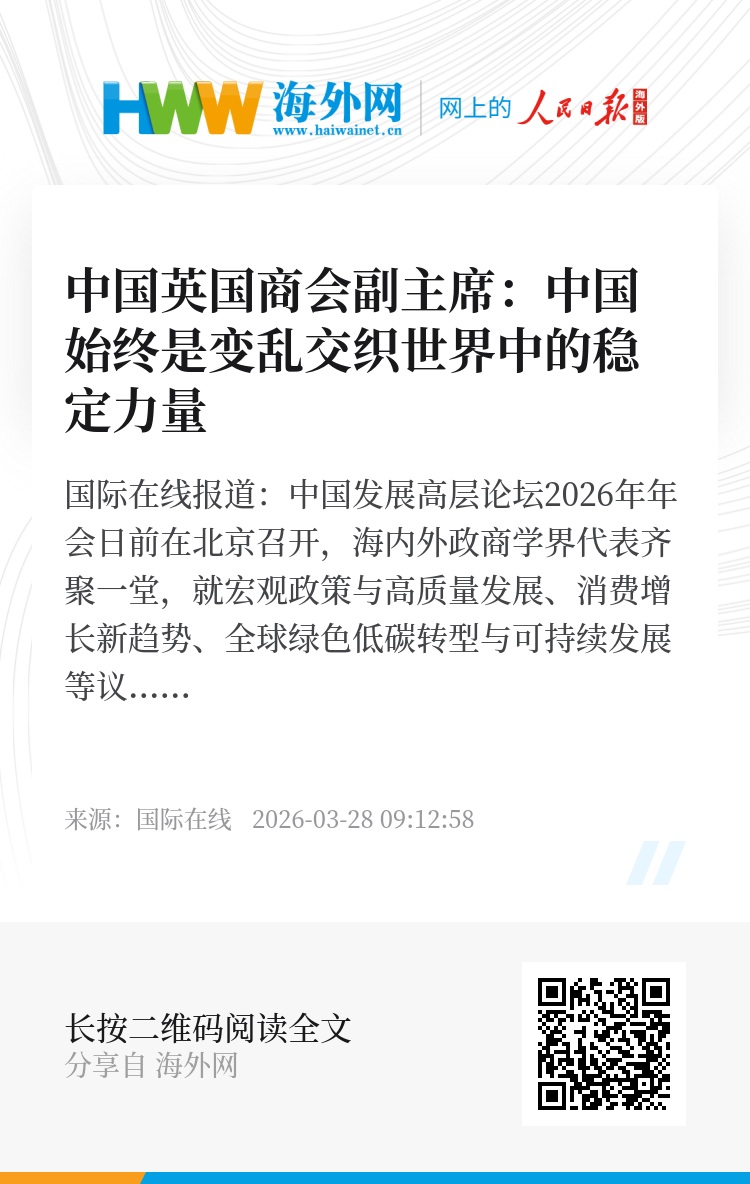 国际在线报道:中国发展高层论坛2026年年会日前在北京召开,海内外政商学界代表齐聚一堂,就宏观政策与高质量发展、消费增长新趋势、全球绿色低碳转型与可持续发展等议题展开深入研讨,围绕中国“十五五”时期发展新方向分享洞见。