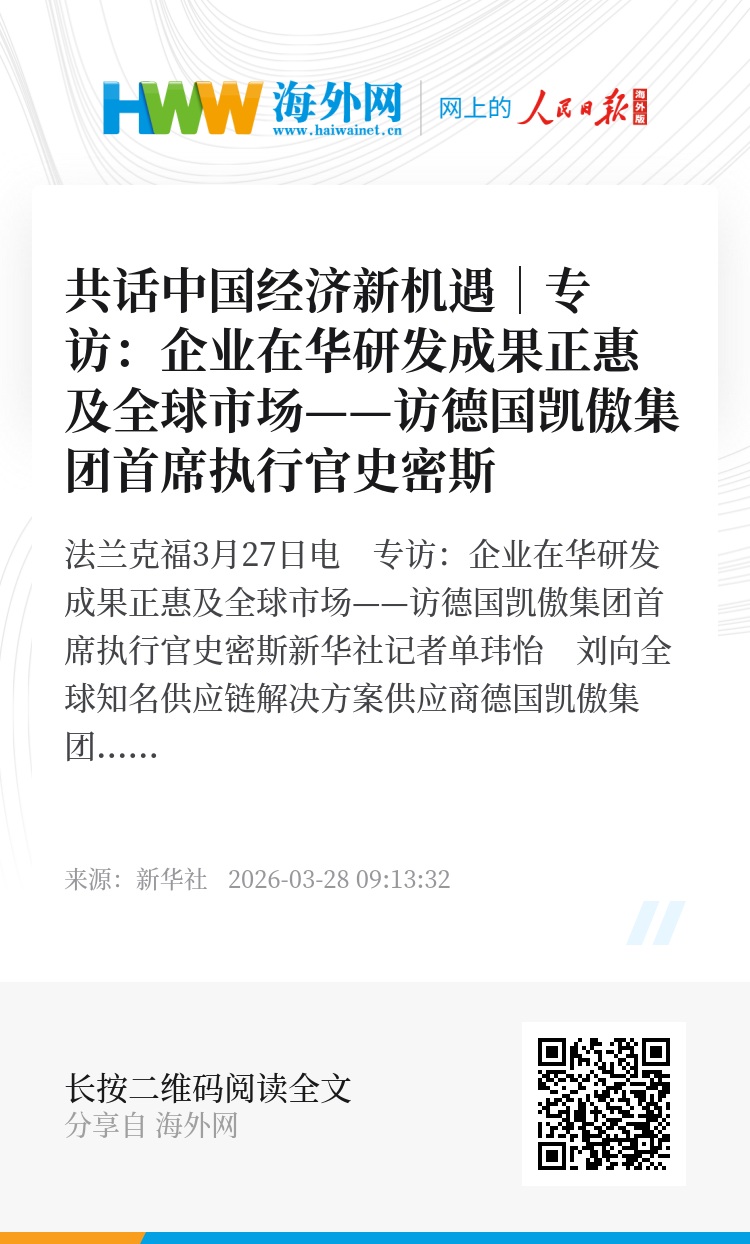 新华社法兰克福3月27日电 专访:企业在华研发成果正惠及全球市场——访德国凯傲集团首席执行官史密斯