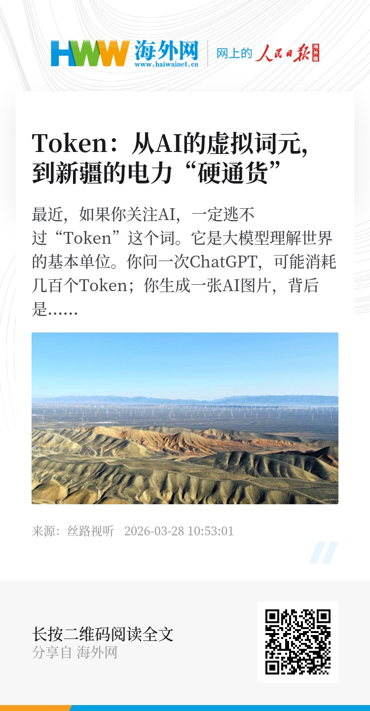 在炒币的人眼里,Token是财富;在极客眼里,Token是代码;但在新疆这片土地上,Token是看得见摸得着的——是戈壁滩上灼热的日光,是猛烈的穿堂风,是电力工人爬上铁塔的背影,是特高压线路上跳动的电流。