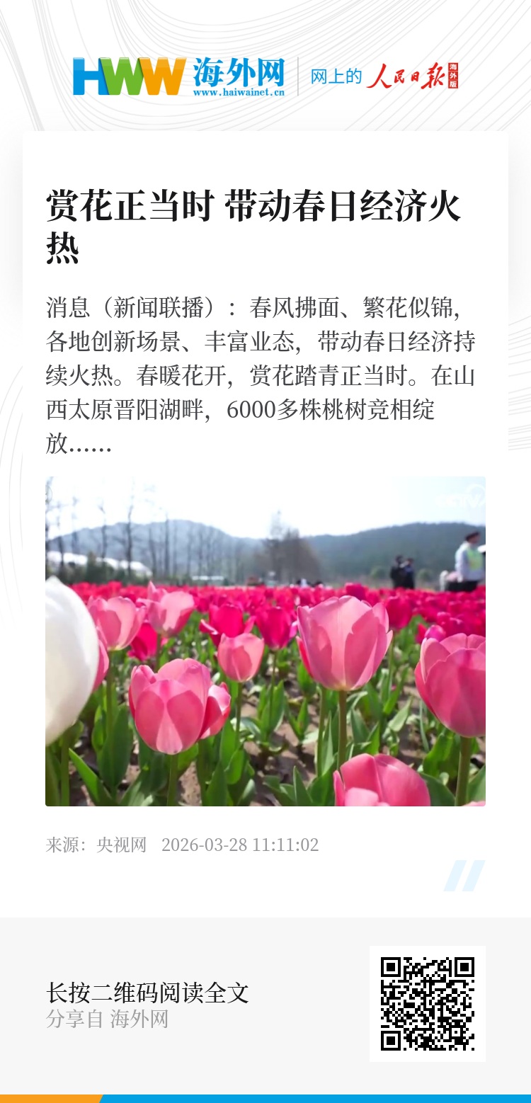 央视网消息(新闻联播):春风拂面、繁花似锦,各地创新场景、丰富业态,带动春日经济持续火热。