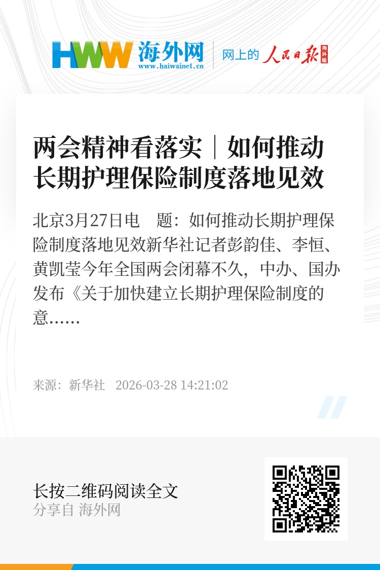 新华社北京3月27日电 题:如何推动长期护理保险制度落地见效