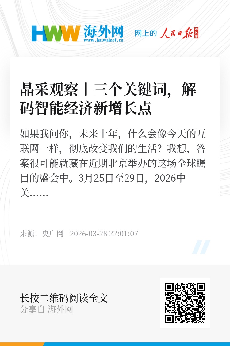 3月25日至29日,2026中关村论坛年会在京举行,年度主题为“科技创新与产业创新深度融合”。在“十五五”开局之年,来自100多个国家和地区的上千名嘉宾参与百余场论坛活动,从通用人工智能到智慧医疗,大家讨论的核心就是“智能经济”。为什么它如此重要?今年,“打造智能经济新形态”首次写入政府工作报告。从深化拓展“人工智能+”,到促进开源生态繁荣,再到打造“5G+工业互联网”升级版,它要改变的,不只是某个行业,而是整个经济的“底层逻辑”。