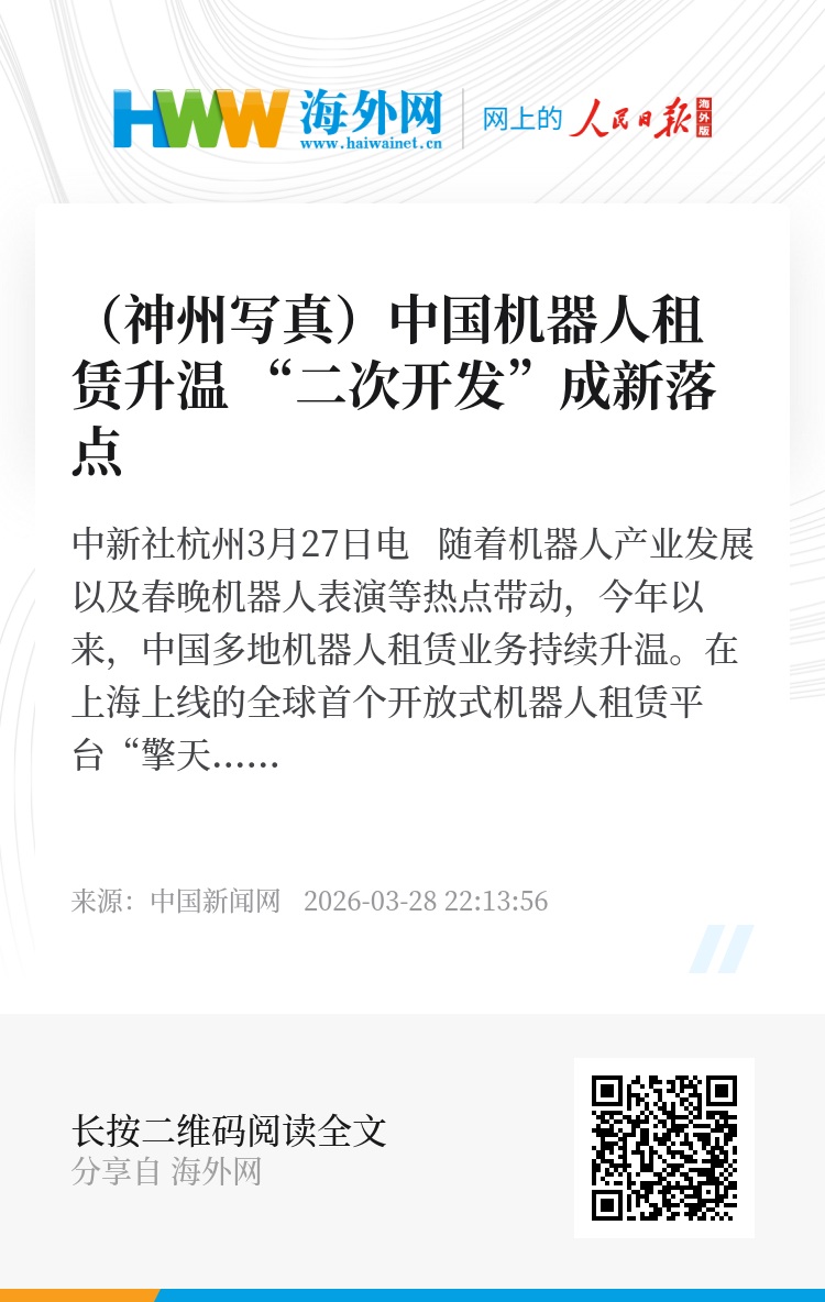 中新社杭州3月27日电 随着机器人产业发展以及春晚机器人表演等热点带动,今年以来,中国多地机器人租赁业务持续升温。