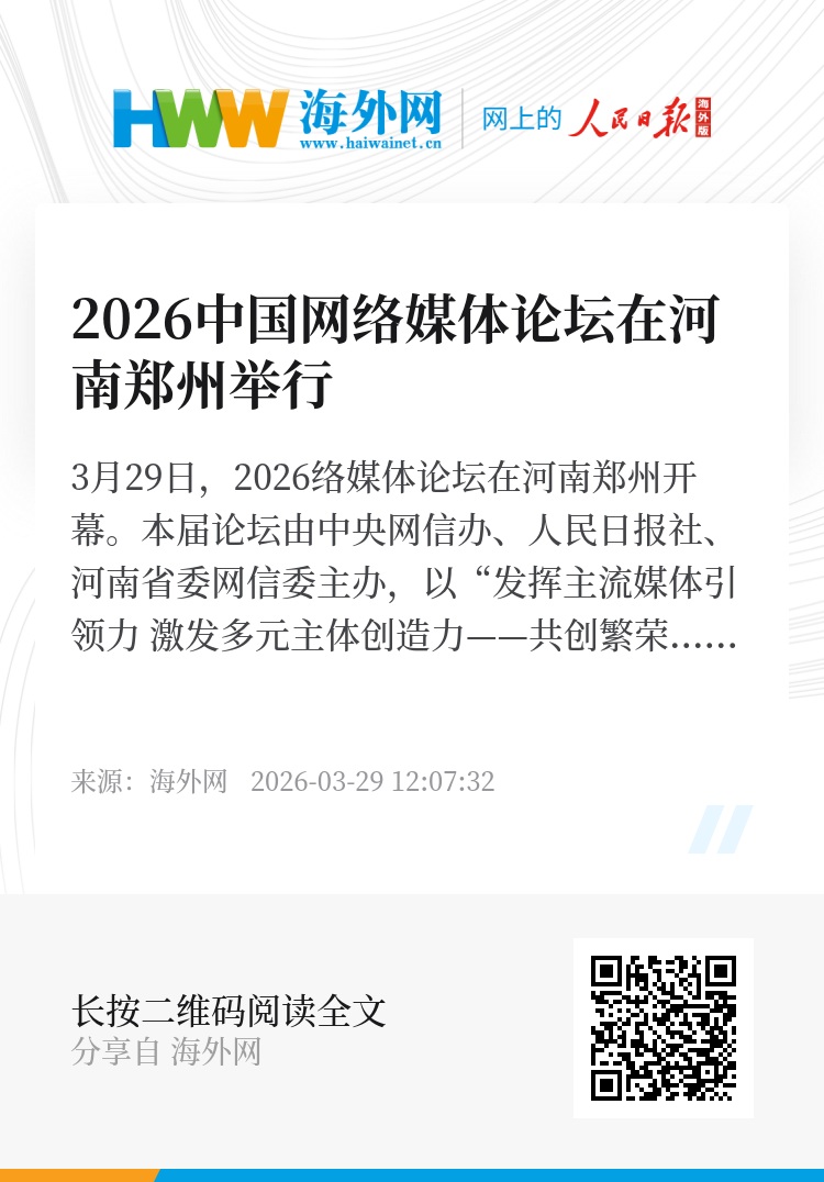 3月29日,2026中国网络媒体论坛在河南郑州开幕。