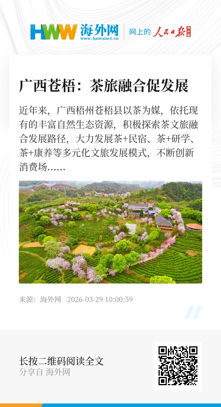近年来,广西梧州苍梧县以茶为媒,依托现有的丰富自然生态资源,积极探索茶文旅融合发展路径,大力发展茶+民宿、茶+研学、茶+康养等多元化文旅发展模式,不断创新消费场景,将产业优势转化为经济优势,助力乡村事业不断取得新成果。图源:视觉中国