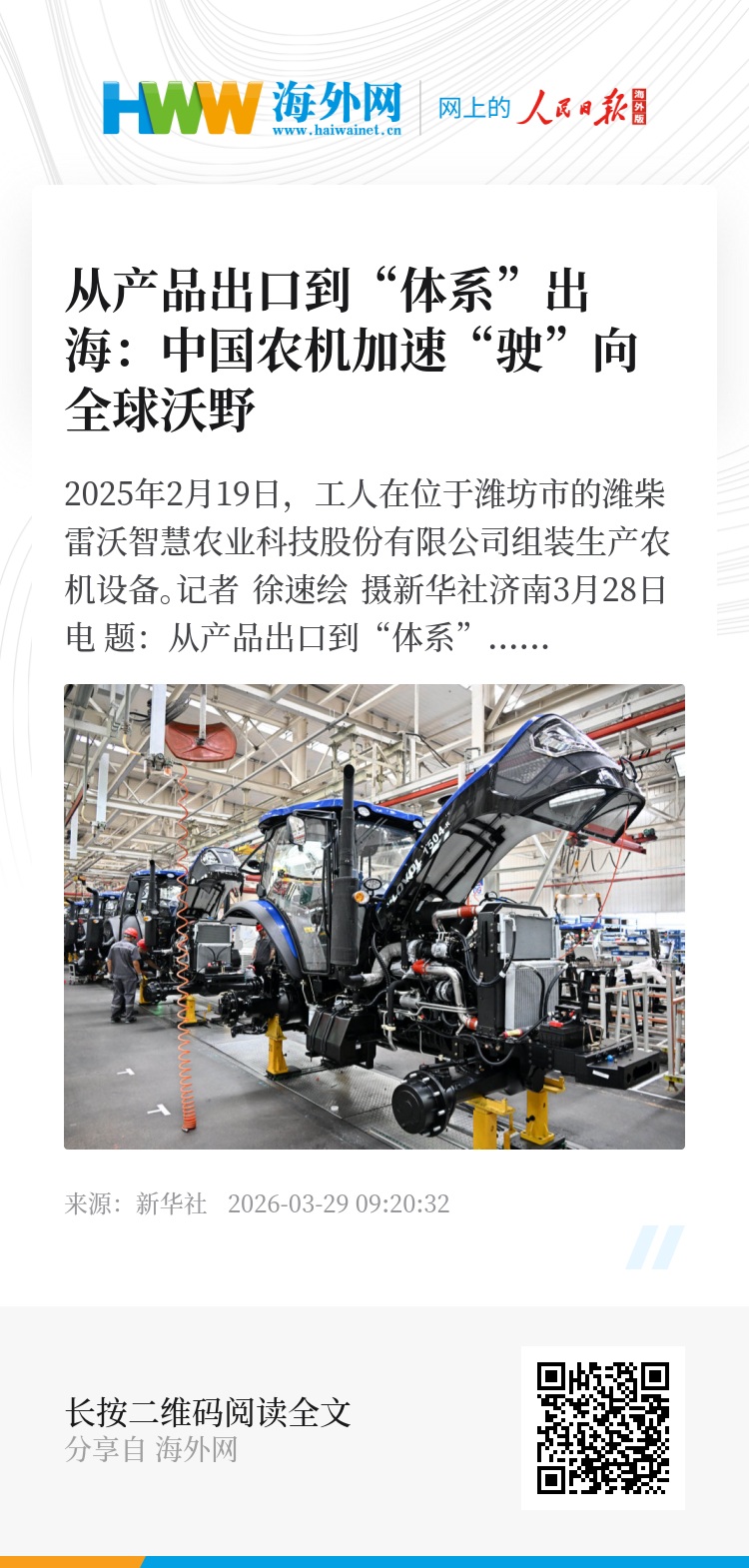 新华社济南3月28日电 题:从产品出口到“体系”出海:中国农机加速“驶”向全球沃野