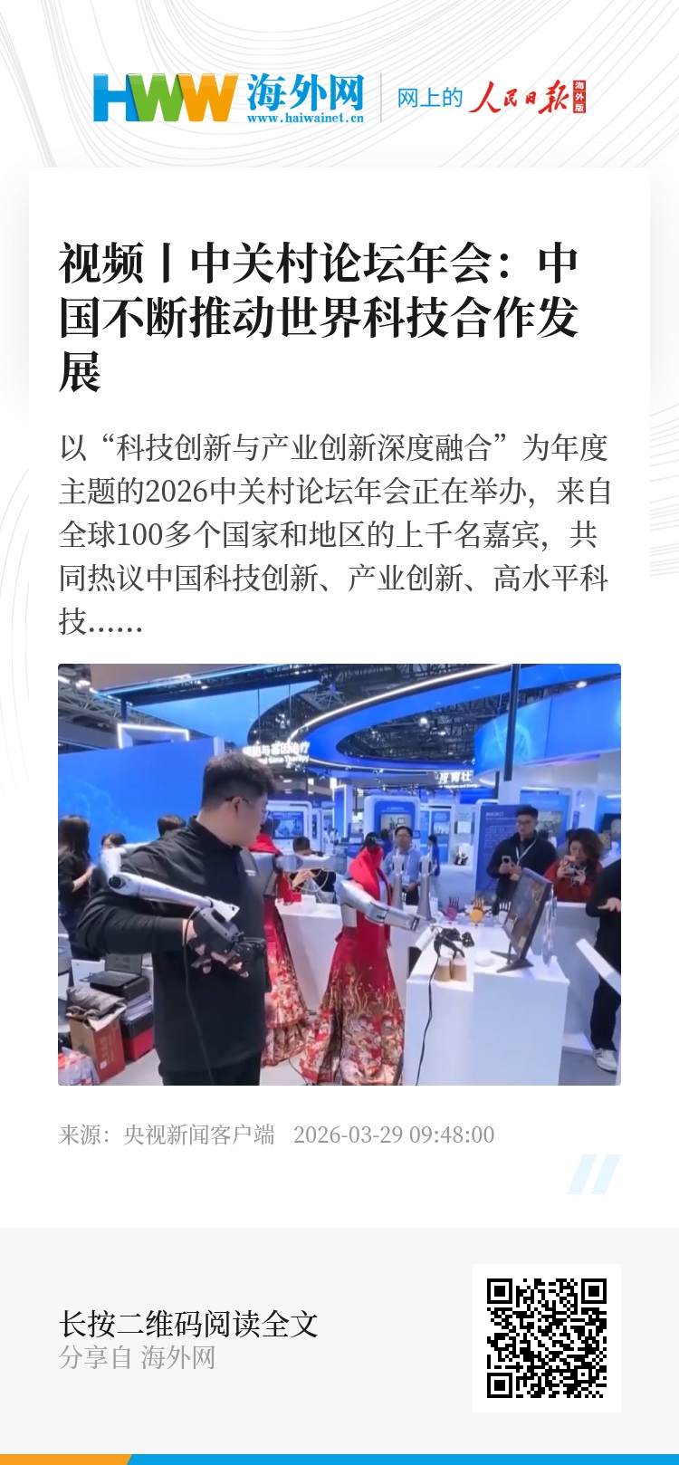 以“科技创新与产业创新深度融合”为年度主题的2026中关村论坛年会正在举办,来自全球100多个国家和地区的上千名嘉宾,共同热议中国科技创新、产业创新、高水平科技开放合作等议题。