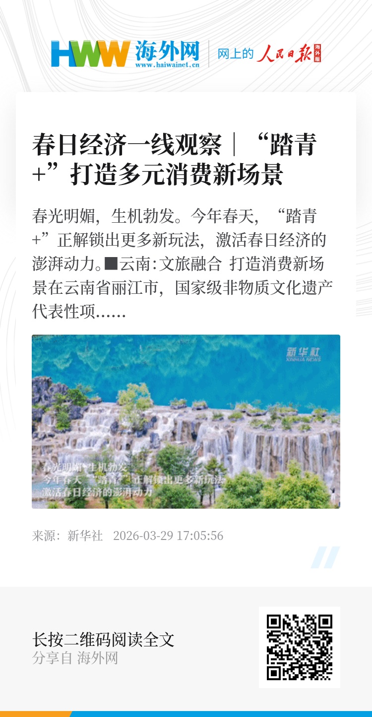 如今,各地正以春光为底色,以文化、赛事为纽带,打造更多元的消费新场景,一幅幅文旅双向赋能的春日经济新画卷,正在神州大地徐徐铺展。