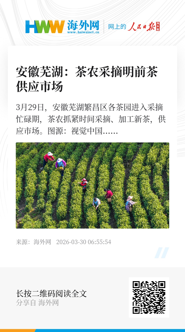 32941470,.安徽芜湖:茶农采摘明前茶供应市场,.2026-03-30 06:55:54,.204441,.张荣耀、张霓