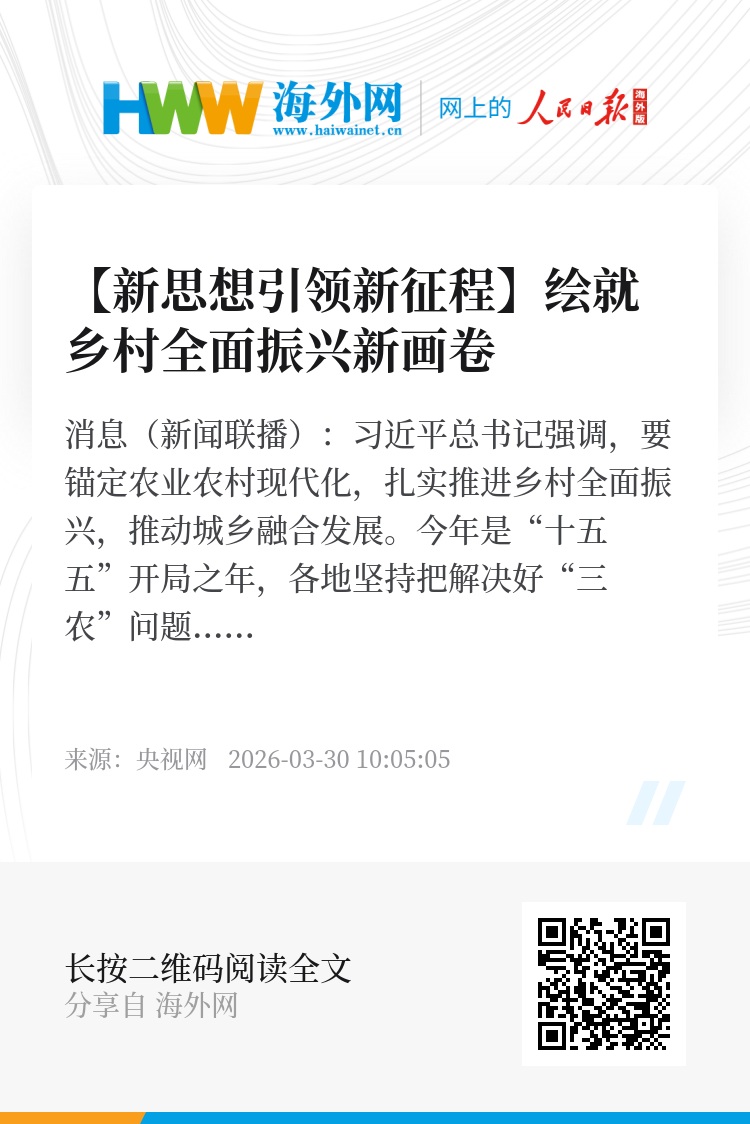 央视网消息(新闻联播):习近平总书记强调,要锚定农业农村现代化,扎实推进乡村全面振兴,推动城乡融合发展。