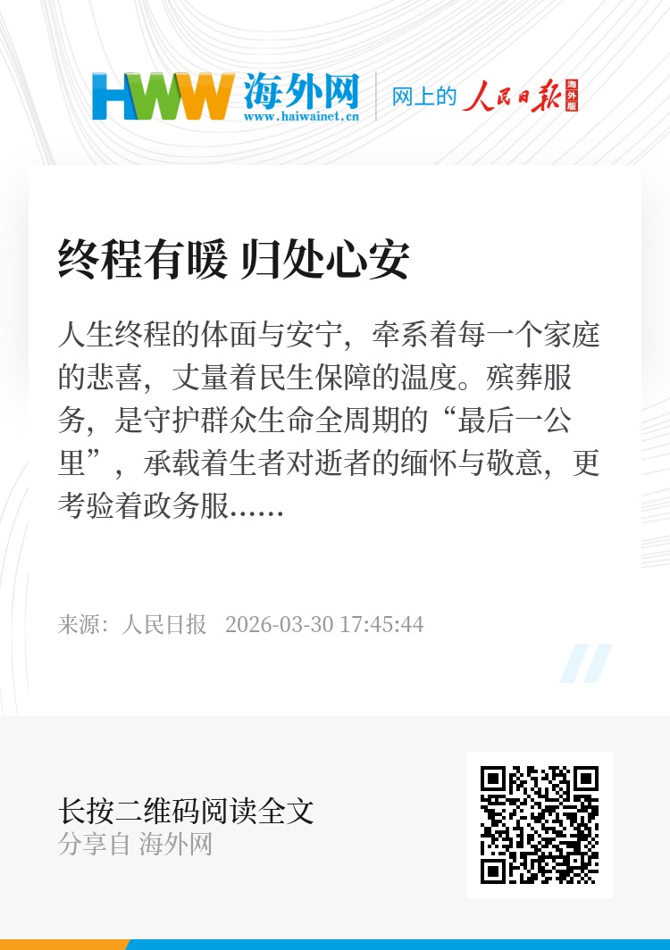 人生终程的体面与安宁,牵系着每一个家庭的悲喜,丈量着民生保障的温度。殡葬服务,是守护群众生命全周期的“最后一公里”,承载着生者对逝者的缅怀与敬意,更考验着政务服务的初心与温度。