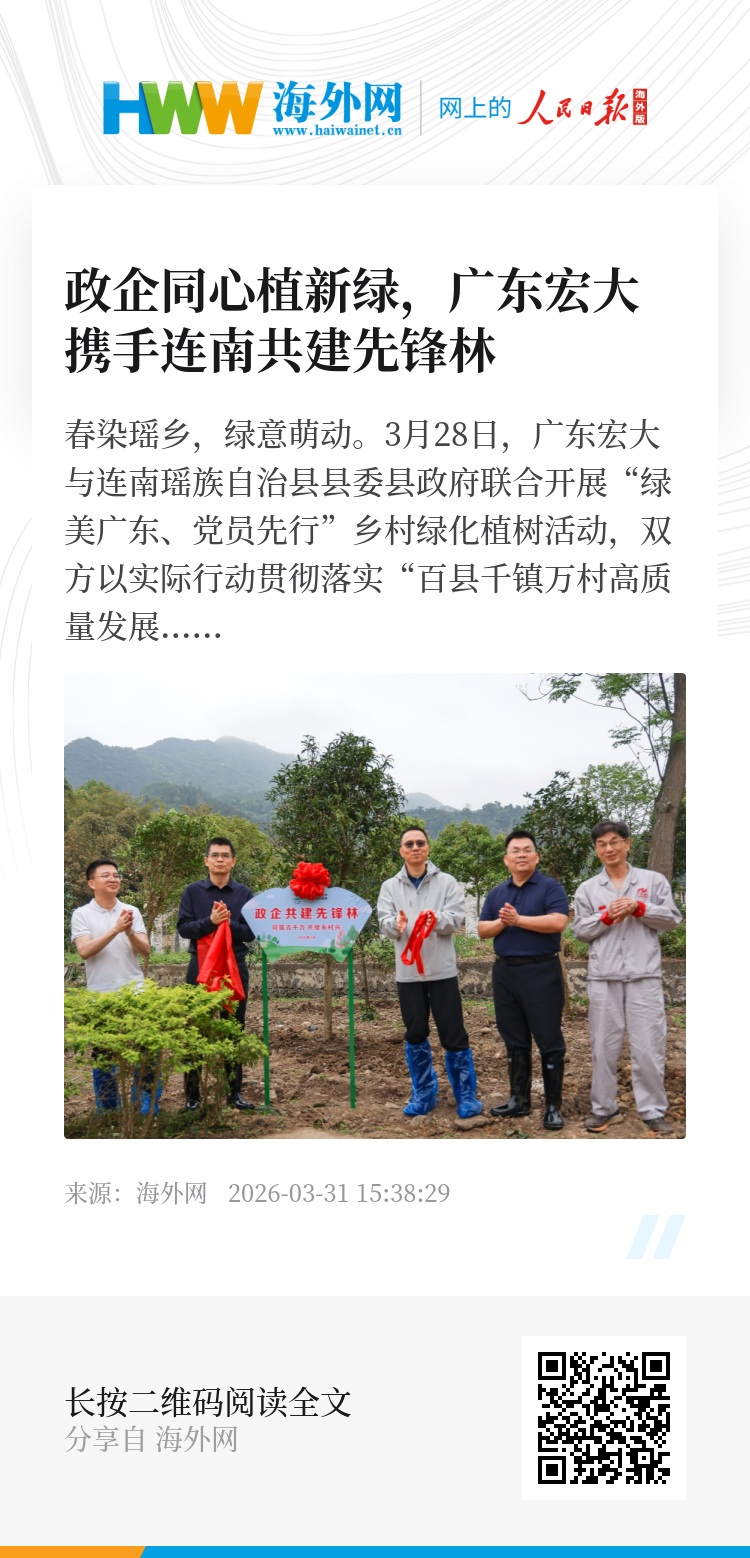 春风吹过新植的桂花林,为瑶乡大地再添生机。这已是广东宏大携手连南政企共建“先锋林”的第二年,这片“先锋林”不仅见证着双方合作的持续深化,也成为广东宏大扎根地方、服务乡村的生动注脚。