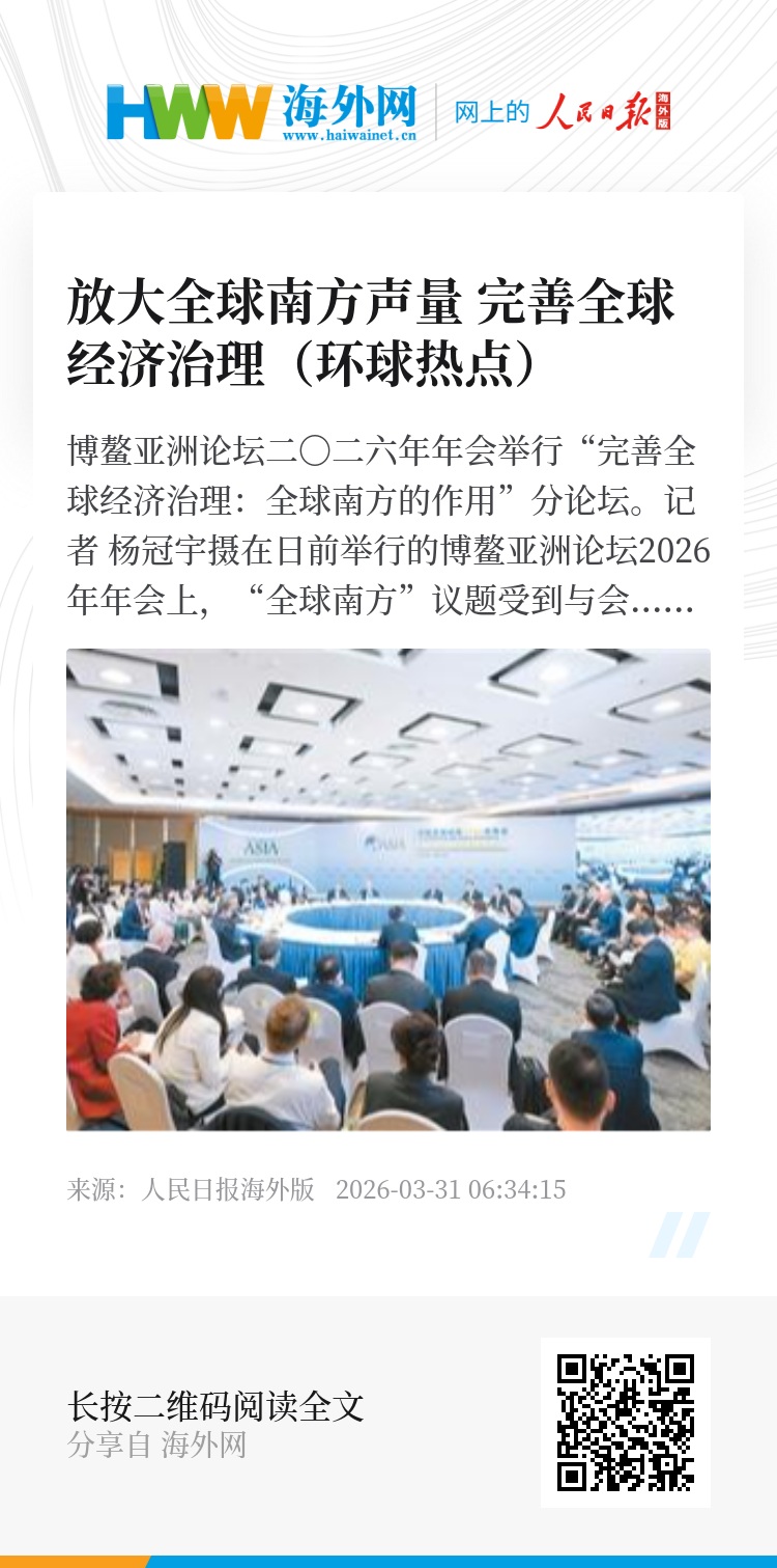 博鳌亚洲论坛二〇二六年年会举行“完善全球经济治理:全球南方的作用”分论坛。