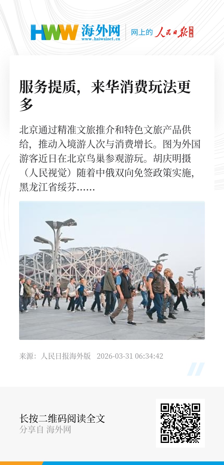 旅行服务出口提质扩容,让境外来华的人不再只是步履匆匆的过客,离不开多部门协同发力。