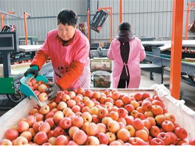 近日,在甘肃省陇南市礼县祁山镇田源果业农民专业合作社生产厂区,工人在转运、清洗苹果,准备外销。