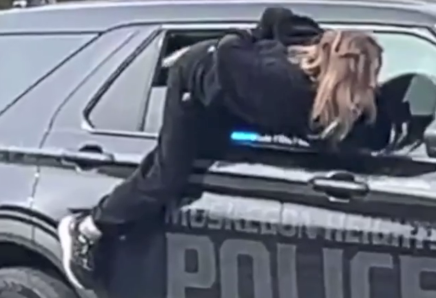 美国女子从警车中逃跑。(画面:《纽约邮报》网站视频截图)