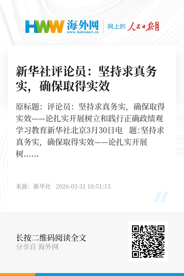 新华社北京3月30日电 题:坚持求真务实,确保取得实效——论扎实开展树立和践行正确政绩观学习教育