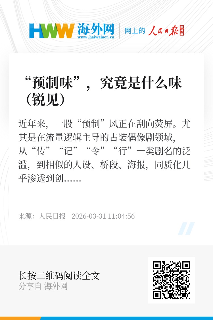 总的来看,古装偶像剧的“预制味”,源于平台竞争中对商业确定性的过度追求。以数据支撑的迎合创作姿态,在取悦观众的同时,有可能窄化创作边界。“预制味”或许能成就一时的热度,但不能以创作胆识的退场和受众圈层的固化为代价。