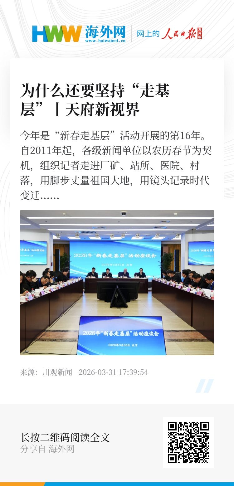 问题来了:走了16年了,作为每年春节保留项目的“新春走基层”过时了吗?在主流媒体系统性变革的大背景下,“新春走基层”的新意在哪里?在3月30日举行的2026年“新春走基层”活动座谈会上,10家中央和地方媒体代表围绕创新议题设置、改进作风文风、提高全媒体传播效能等主题,分享2026年“新春走基层”的心得体会。当媒体人扎扎实实地从痛点出发,和百姓相处,找时代解法,做“沉甸甸、水灵灵”的报道时,他们发现,受众是买账的、共情的、认可的。