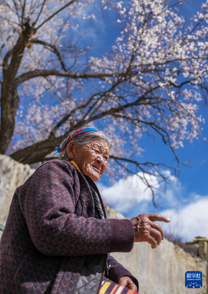 次仁桑姆在宗卡村家中晒太阳(3月26日摄)。