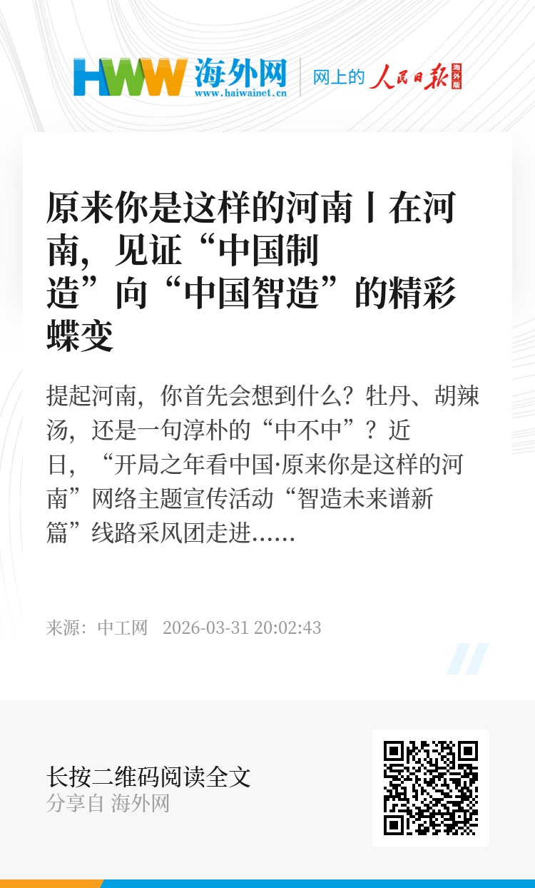 从一碗热气腾腾的胡辣汤,到一台台高精尖设备;从厚重的历史文化,到蓬勃的现代工业——既有历史积淀,又汇聚创新动能,这是河南发展的缩影,也映照出“中国制造”不断跃升的深厚根基。可以预见,在科技进步与产业升级驱动下,“中国制造”将加速迈向“中国智造”,为中国经济注入更多信心、更多韧性、更多动能。(中工网评论员 陈婉扬)