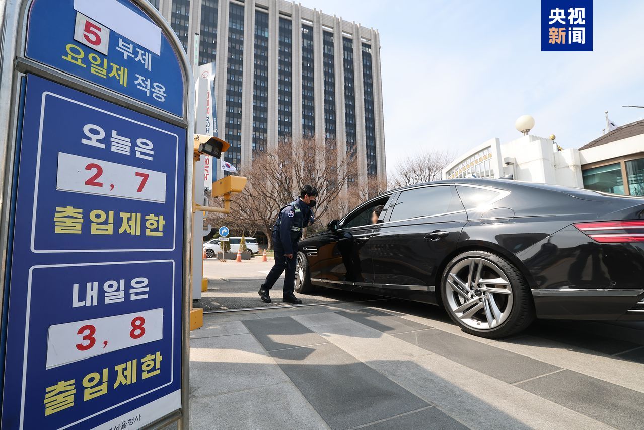△韩国首尔一处政府机关门口的车辆限行告示牌